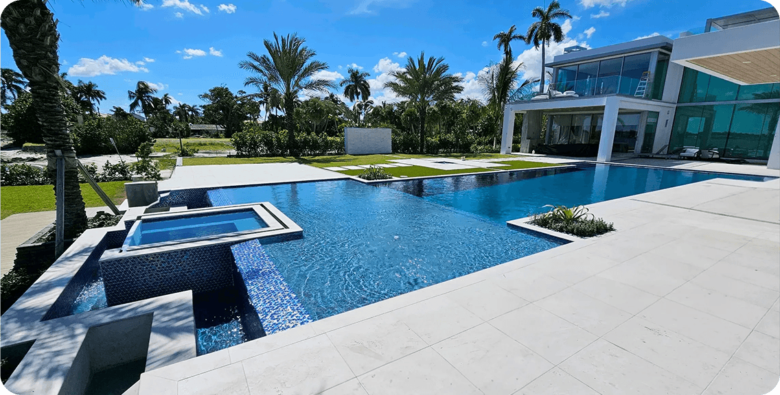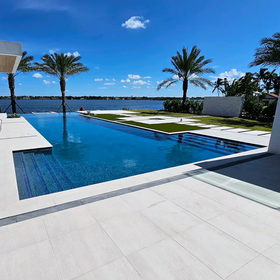 By adding glass beads to Blue Surf, the finish gains extra brilliance and depth. The glass reflects sunlight and underwater lighting, creating a more luminous, high-end blue water tone.
